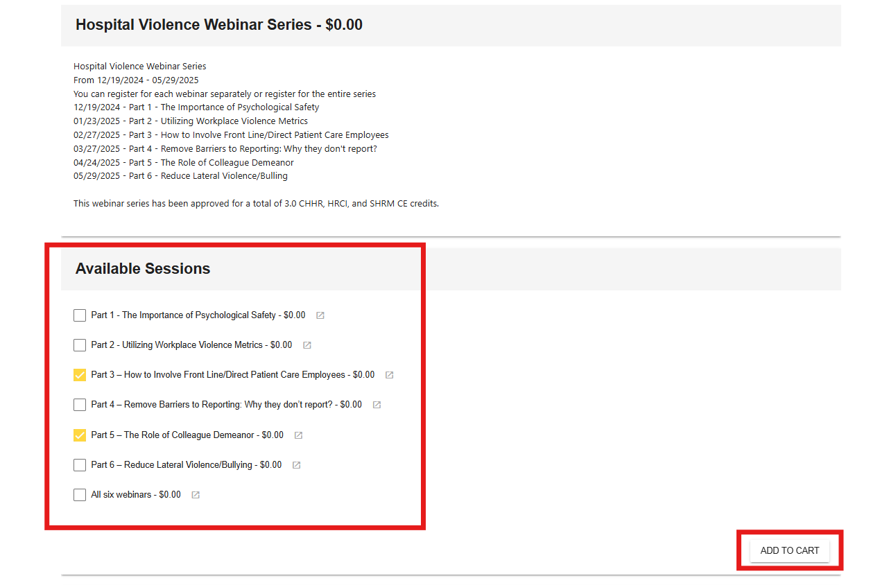 - If there are no sessions, just click "Add to Cart."